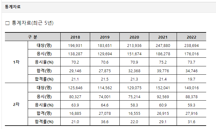 - 반대로 2차에만 합격한 사람은 전체 무효처리되어 내년에 1차와 2차 시험을 다시 봐야 합니다.